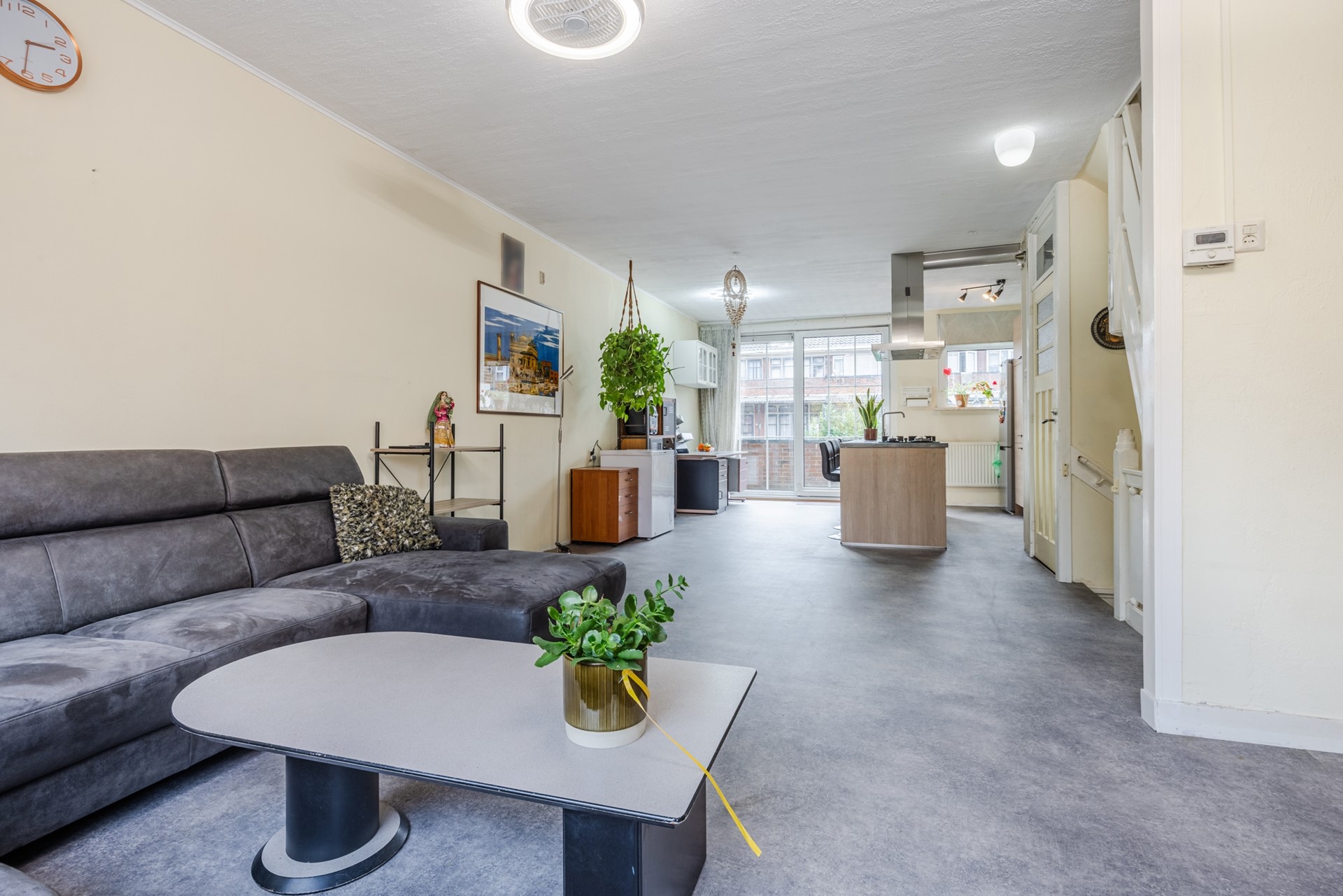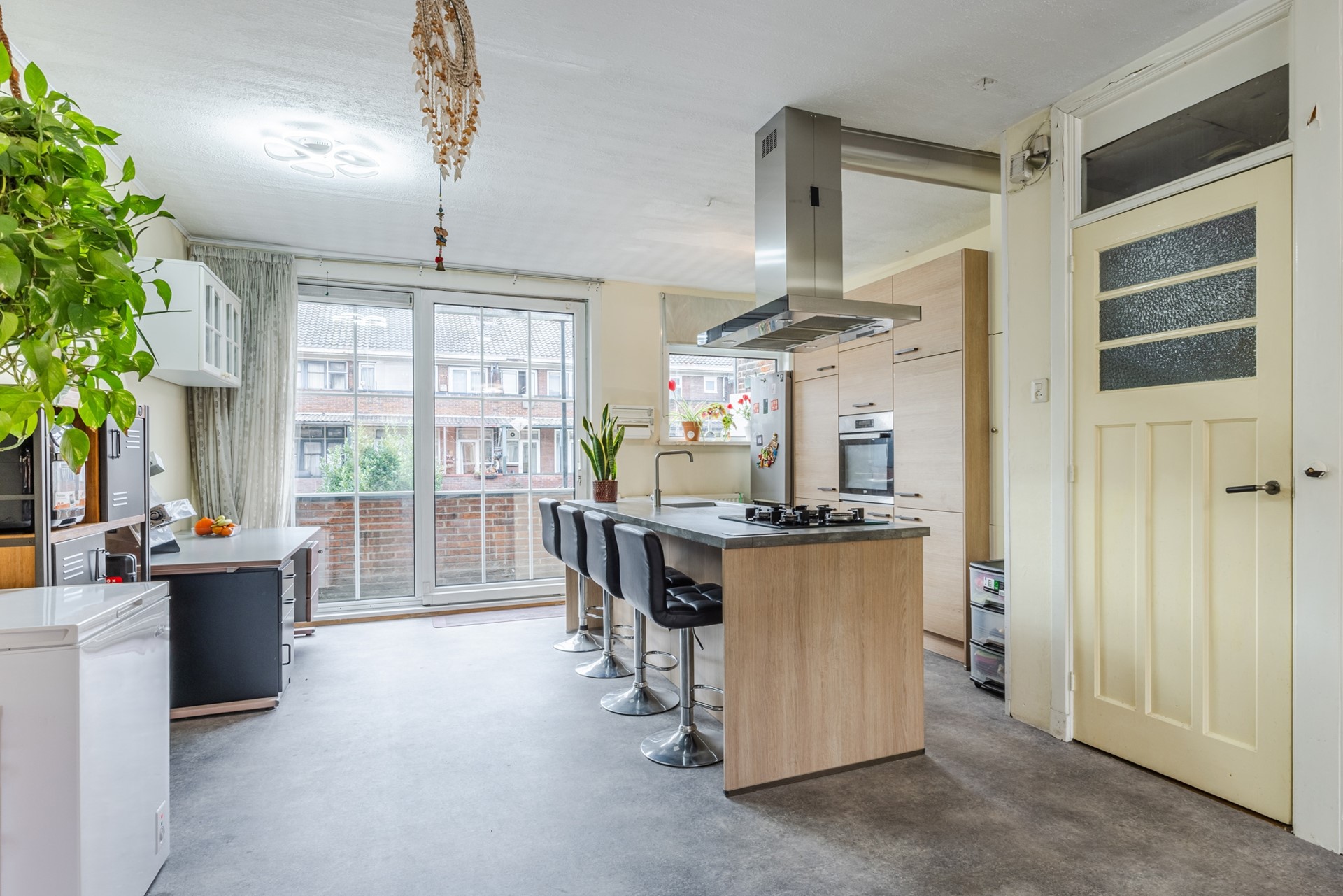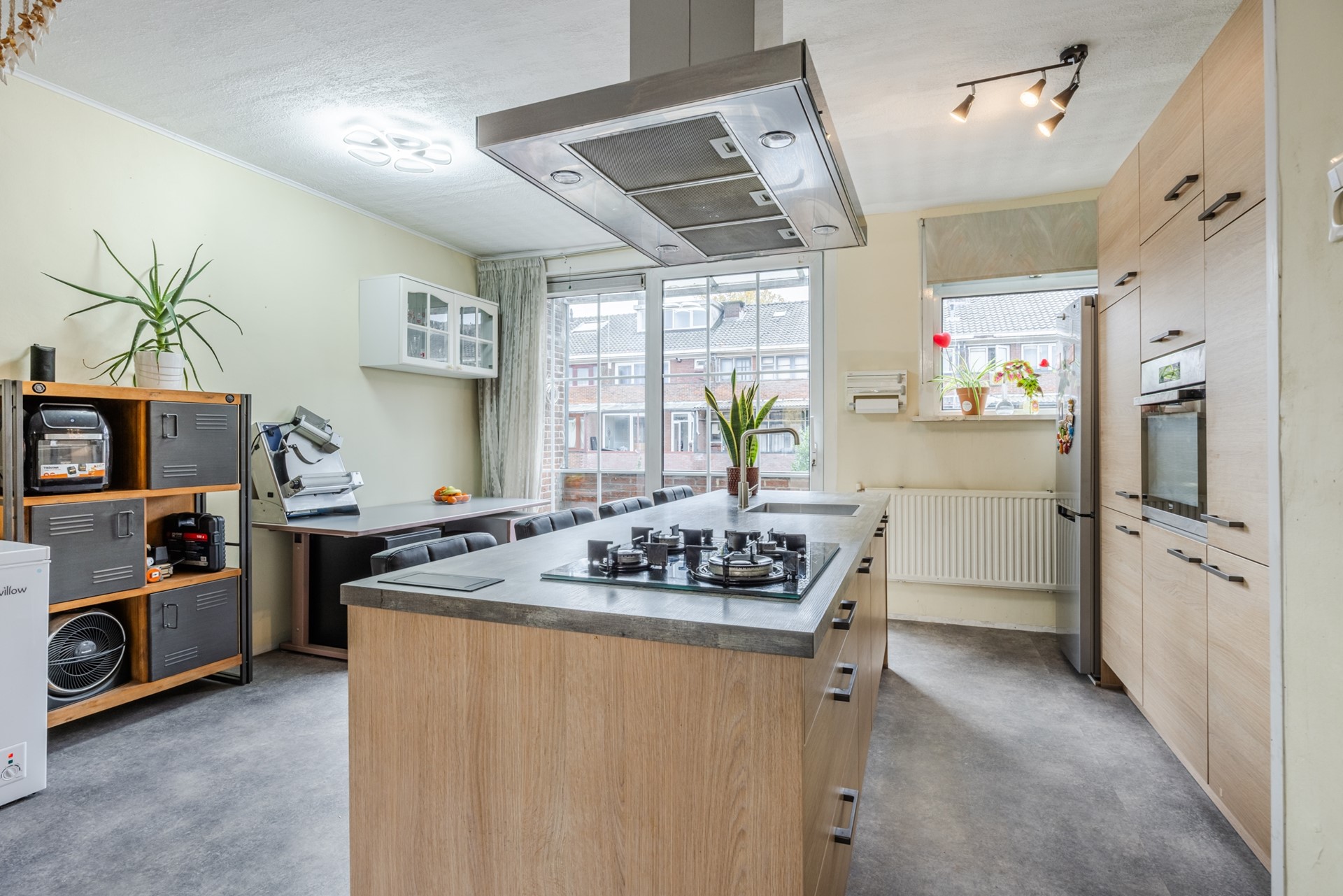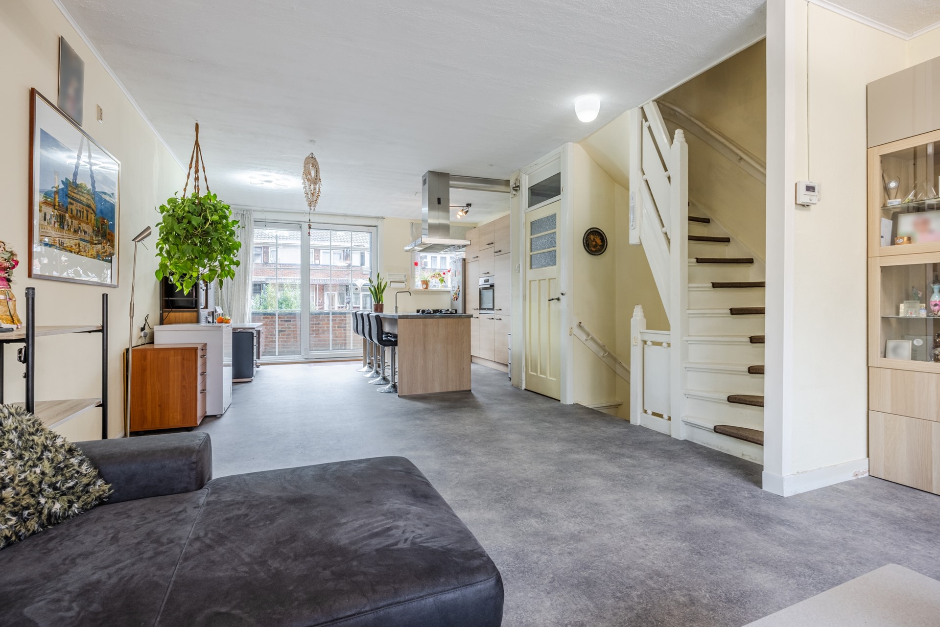 De woonkamer is gelegen aan de achterzijde van de woning en geeft u via de schuifpui toegang tot de achtertuin. De achtertuin (ca. 23 m2) is gelegen op het zuidwesten en is via een achterom toegankelijk. De open keuken in 2018 geplaatst en voorzien van een 4-pits gaskookplaat, oven, koelkast, vriezer, afzuigkap, spoelbak en voldoende kast- en werkruimte.