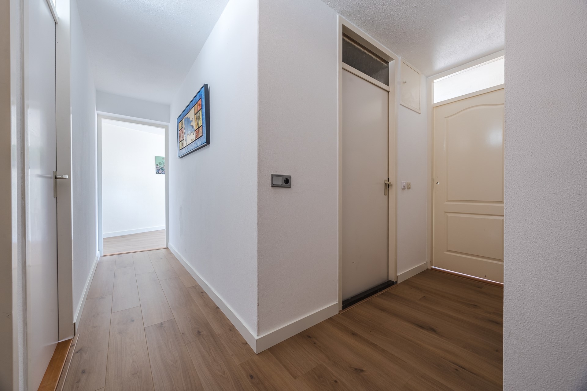 Verder heeft u nog het toilet en de meterkast. Het toilet is geheel betegeld en voorzien van een hangend closet en een fonteintje.