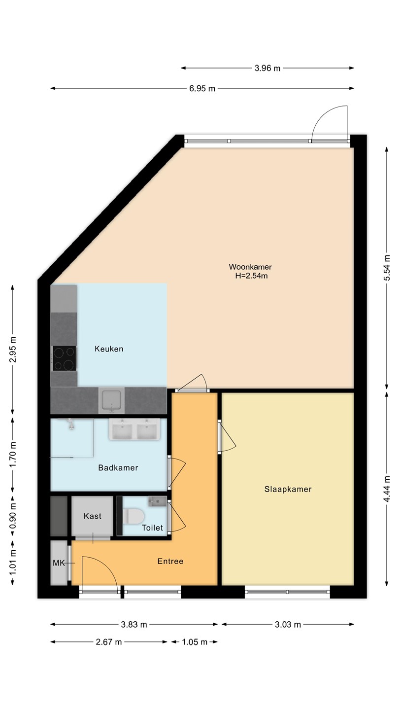 De Meetinstructie is gebaseerd op de NEN2580. De Meetinstructie is bedoeld om een meer eenduidige manier van meten toe te passen voor het geven van een indicatie van de gebruiksoppervlakte. De Meetinstructie sluit verschillen in meetuitkomsten niet volledig uit, door bijvoorbeeld interpretatieverschillen, afrondingen of beperkingen bij het uitvoeren van de meting. Indien de exacte maten voor een koper van cruciaal belang zijn, adviseren wij deze zelf na te meten. De (kandidaat)koper(s) zullen, indien gewenst, daartoe in de gelegenheid gesteld worden op een passend moment teneinde teleurstellingen en schade te voorkomen.