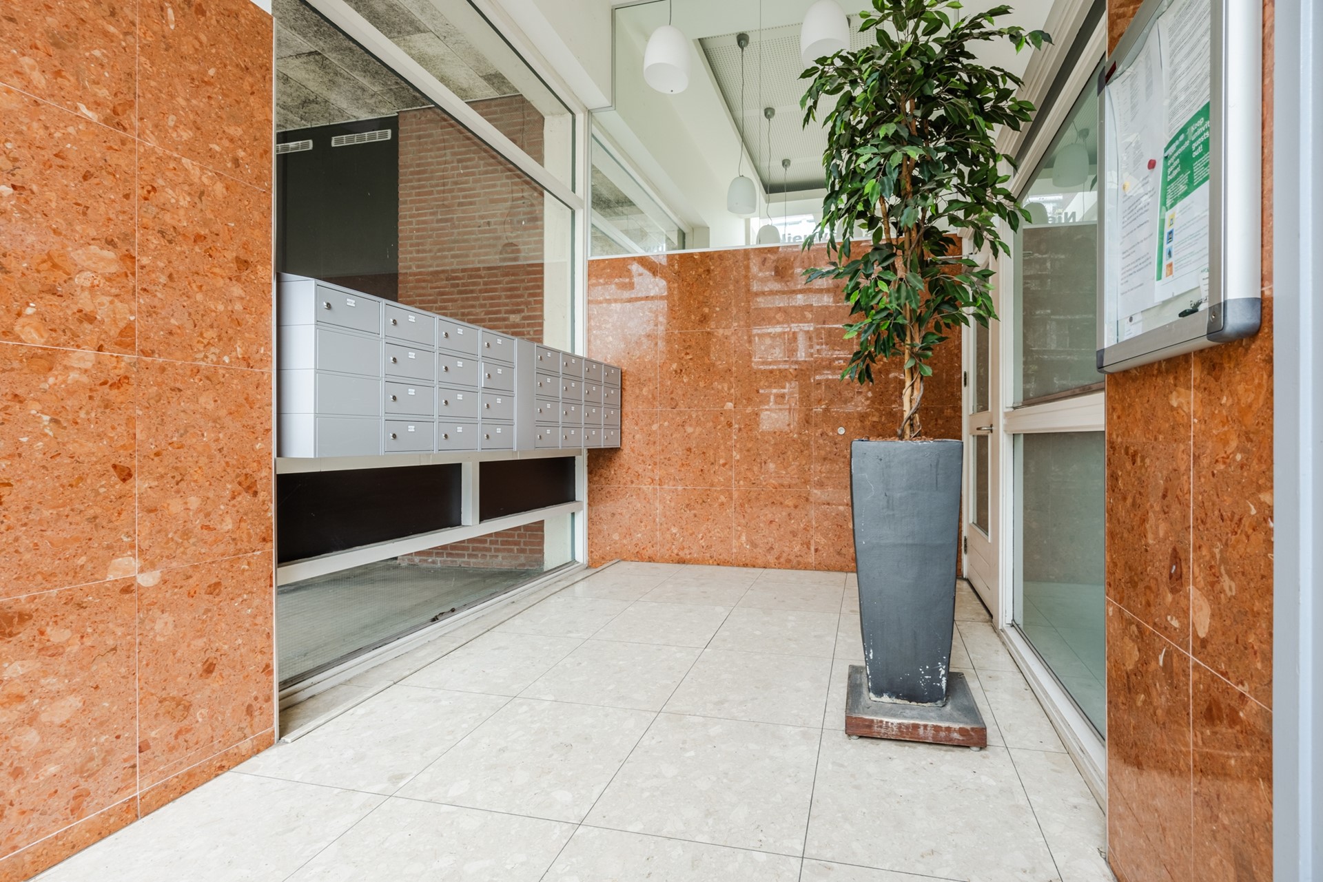 Via de gesloten entree met intercominstallatie betreedt u het complex. Met de lift bereikt u eenvoudig de eerste verdieping. Vanuit de entree is tevens de berging bereikbaar, gelegen in de onderbouw via de garage. Op dit niveau bevindt zich ook een inpandige fietsenstalling.