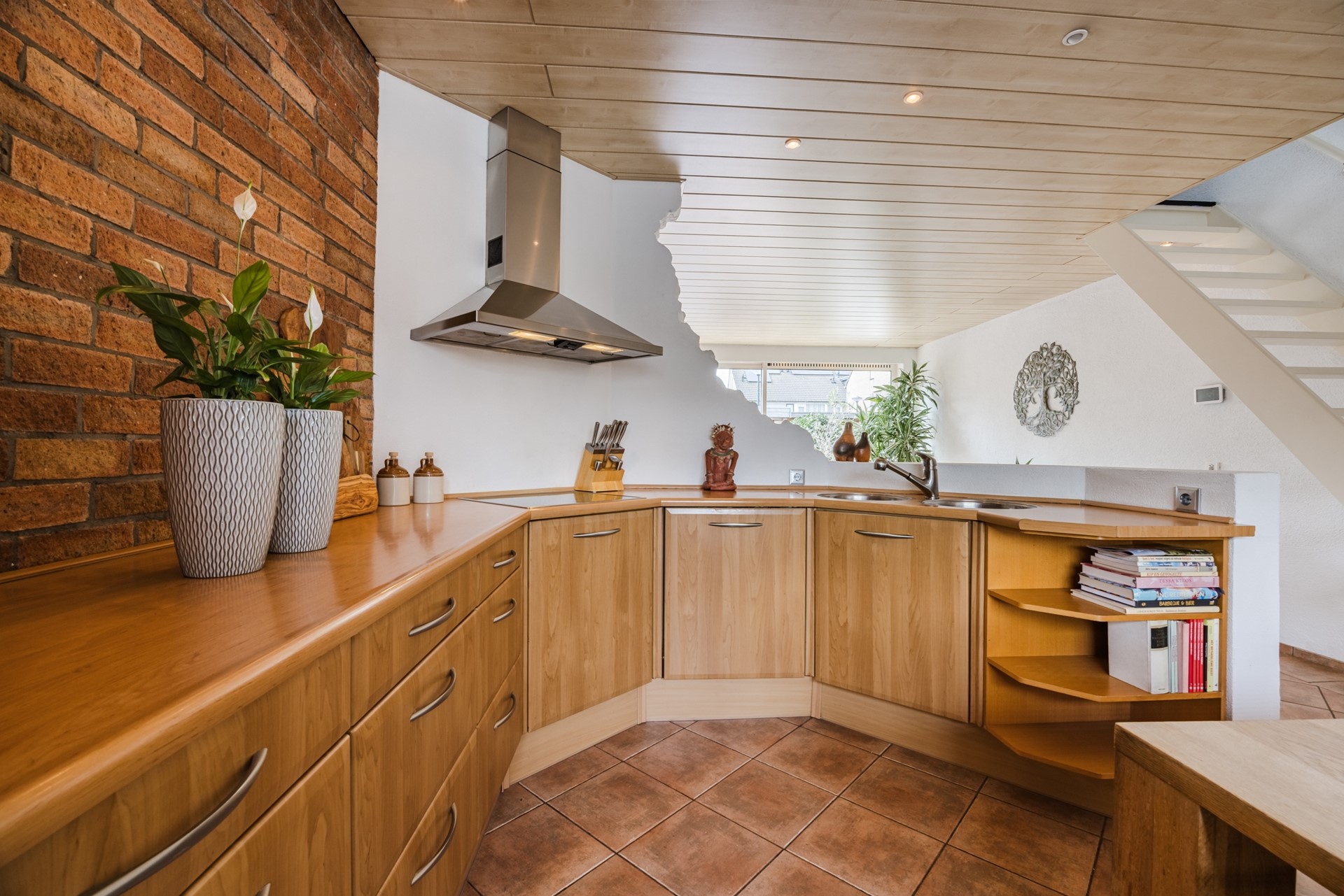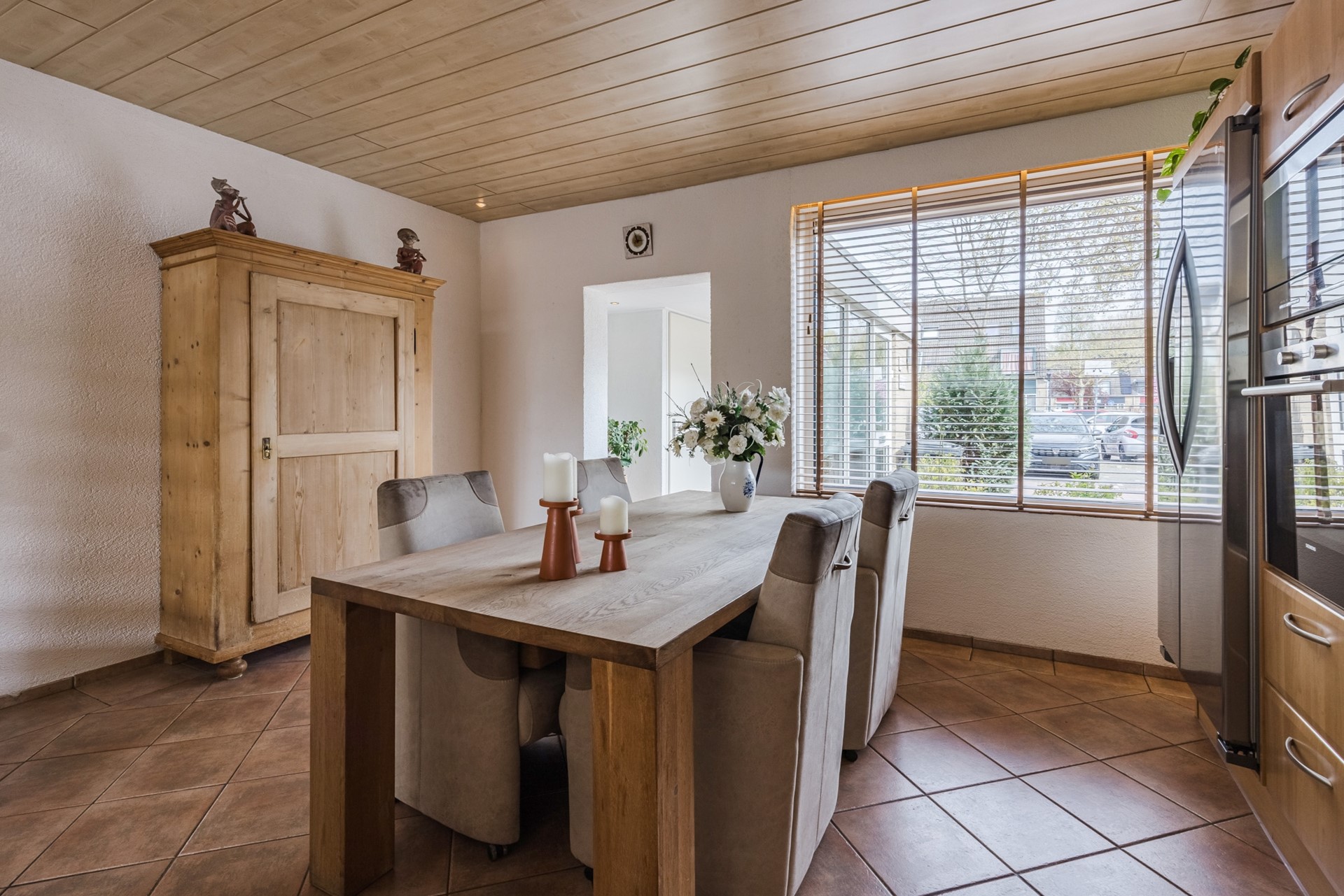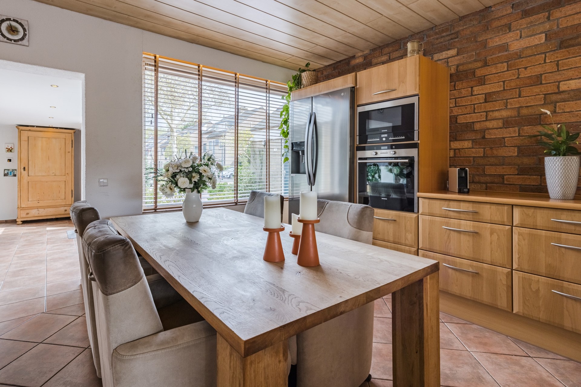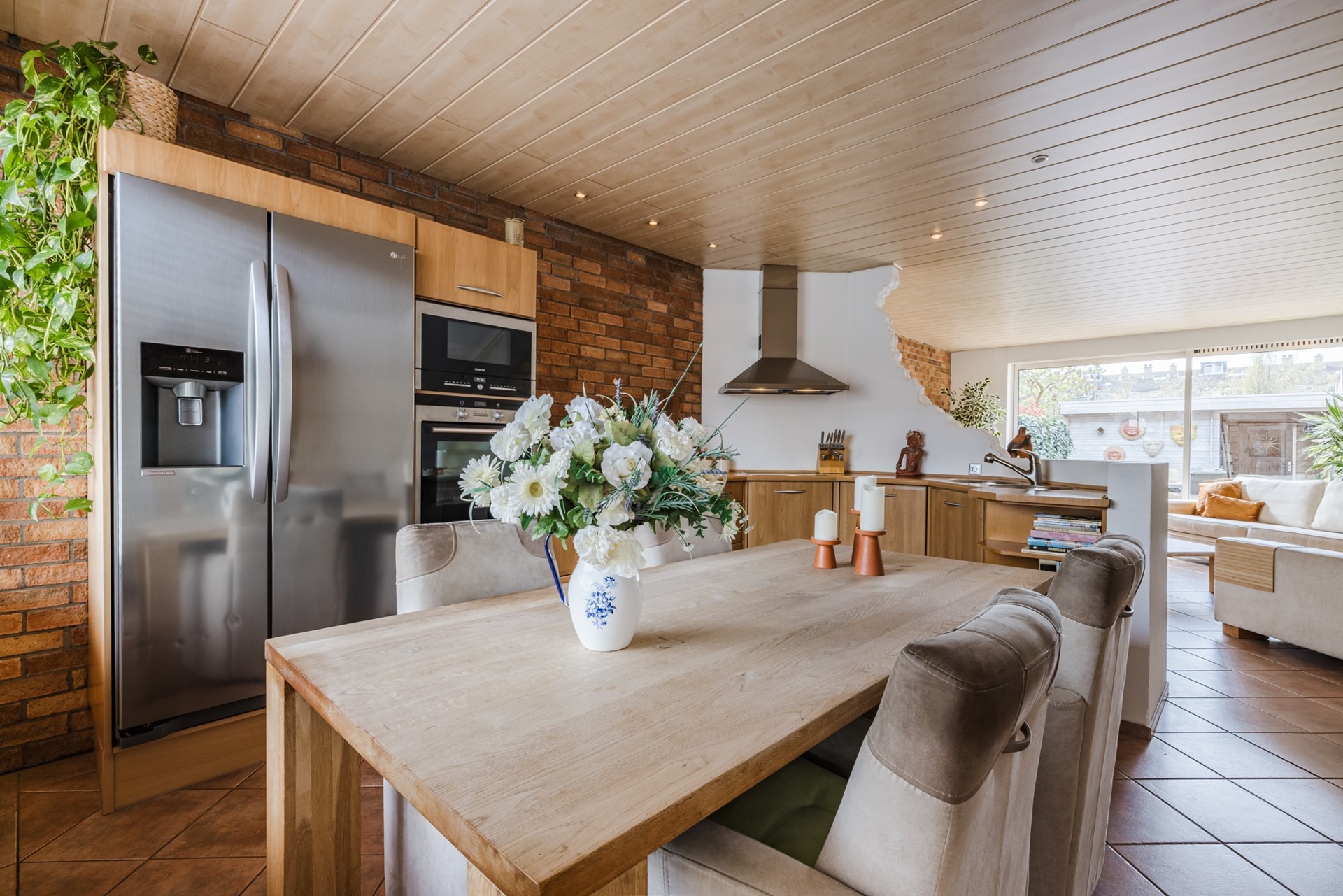 De keuken is ingericht als een echte leefkeuken, waar u comfortabel kunt koken en verblijven. De keuken is voorzien van een 4-pits inductiekookplaat, oven, koel-/vriescombinatie, vaatwasser, afzuigkap en biedt volop kastruimte en werkruimte.