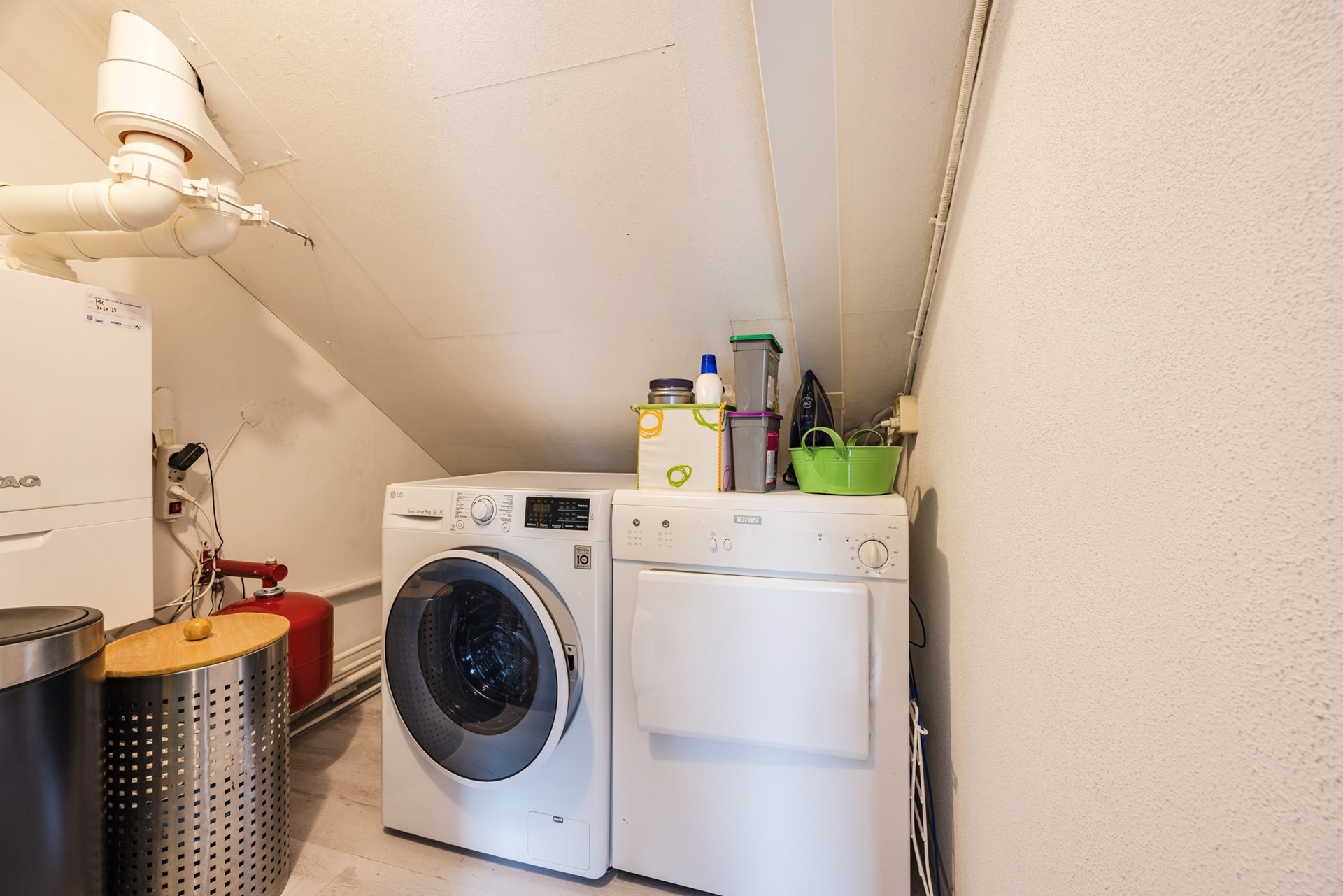 De tweede verdieping bestaat momenteel uit een open ruimte met een aparte wasruimte/berging. Hier bevindt zich de aansluiting voor de wasmachine en droger, evenals de cv-installatie. Deze verdieping biedt de mogelijkheid tot het creëren van een extra slaapkamer (ca. 19 m²). Tevens heeft u vanaf hier toegang tot de praktische bergvliering.