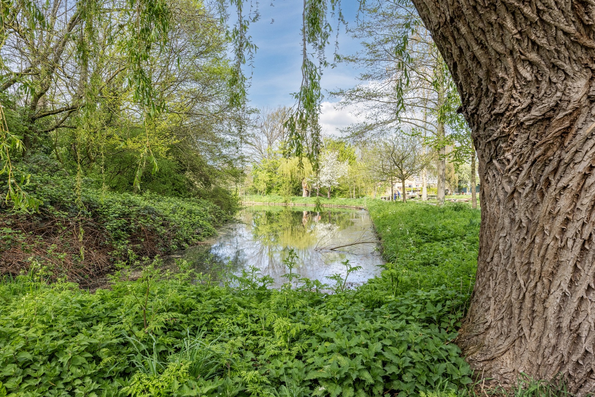 De eerste slaapkamer (ca. 16 m²) is gelegen aan de voorzijde van de woning en is ontstaan uit twee kamers.