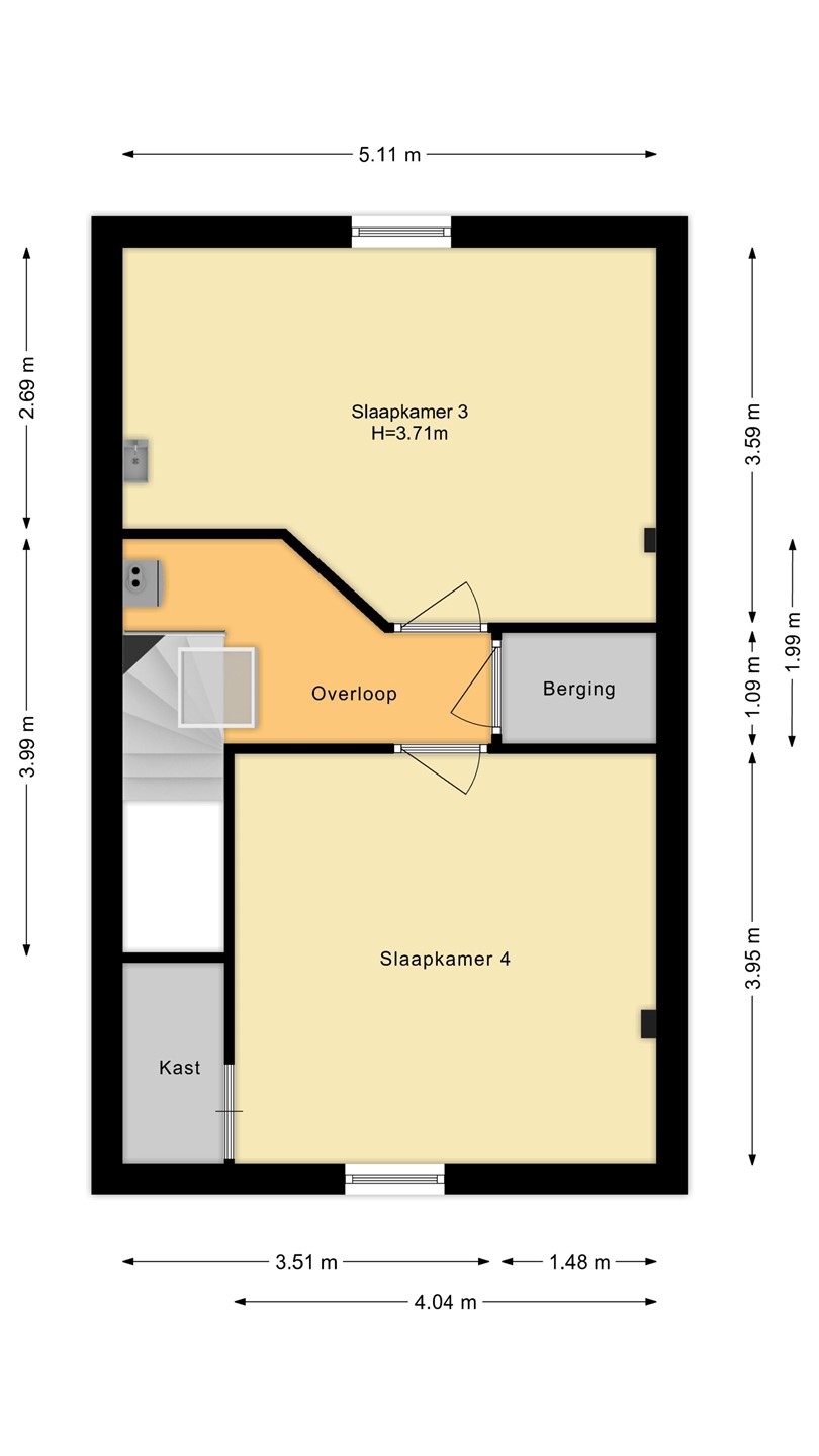 Op de tweede verdieping zijn twee zeer ruime slaapkamers en een extra berging.
