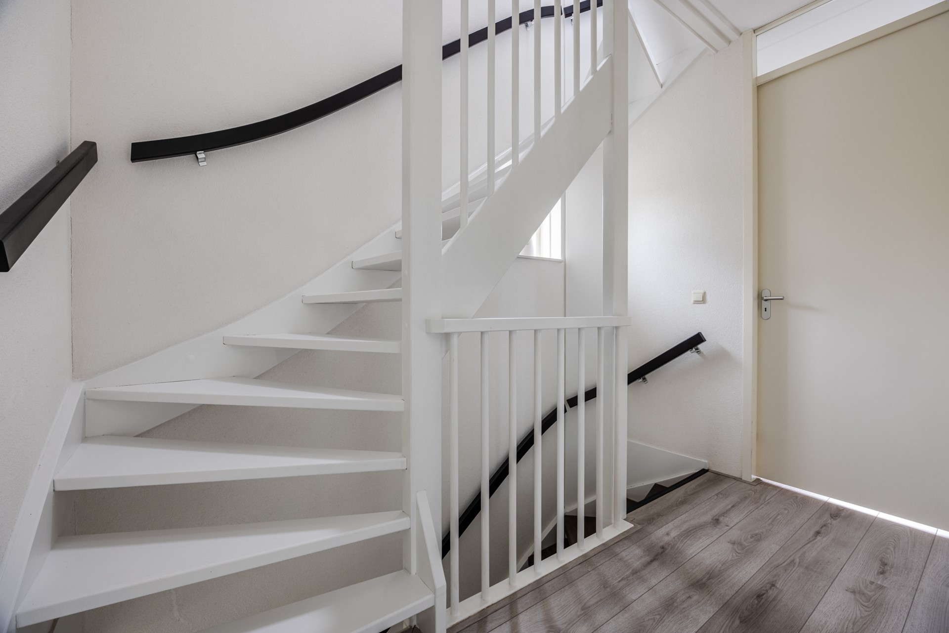 Op de eerste verdieping zijn twee ruime slaapkamers, de badkamer en de trap naar de tweede verdieping. De moderne badkamer, in 2024 geheel vernieuwd, is geheel betegeld en voorzien van vloerverwarming, een douche, design handdoek radiator, toilet, spiegel en een wastafelmeubel.