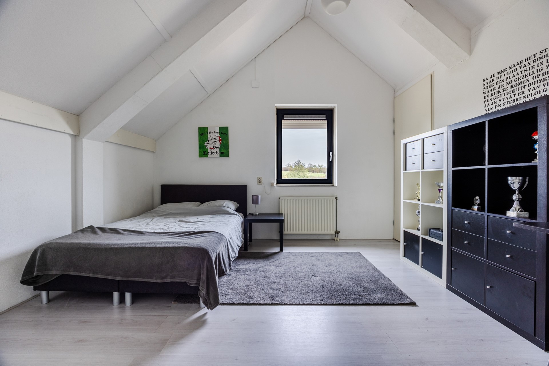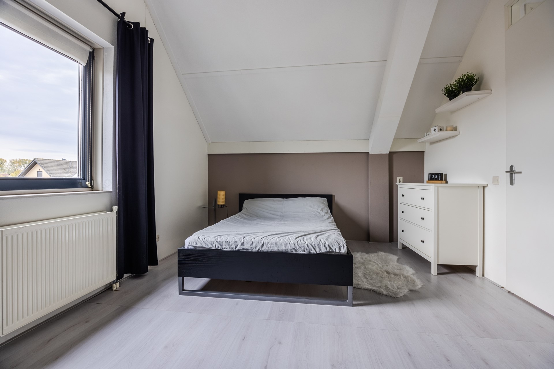 Slaapkamer 1: (ca. 23 m2) is de zeer ruime hoofdslaapkamer gelegen aan de achterzijde van de woning. Deze slaapkamer is ook voorzien van een inloopkast. Voorheen waren dit twee slaapkamers.
