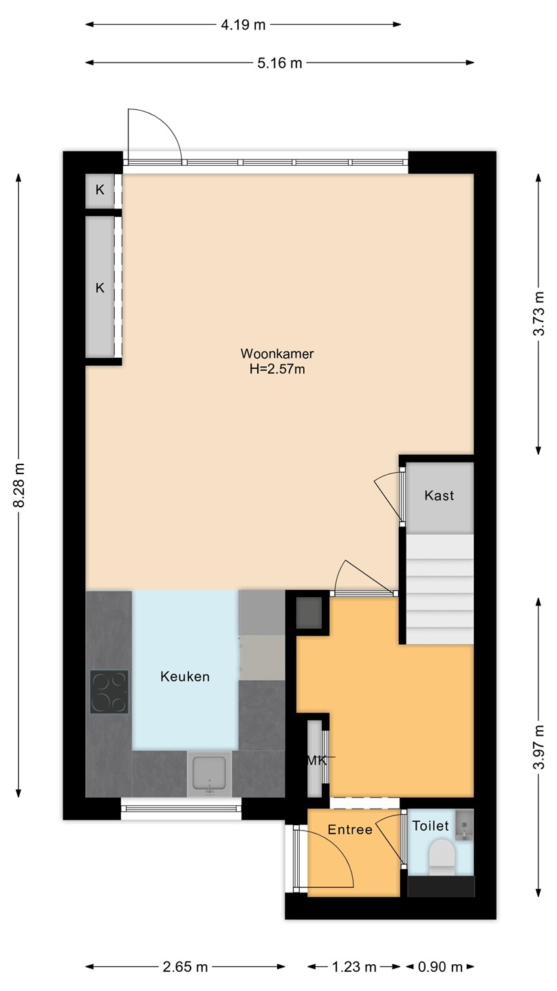 De Meetinstructie is gebaseerd op de NEN2580. De Meetinstructie is bedoeld om een meer eenduidige manier van meten toe te passen voor het geven van een indicatie van de gebruiksoppervlakte. De Meetinstructie sluit verschillen in meetuitkomsten niet volledig uit, door bijvoorbeeld interpretatieverschillen, afrondingen of beperkingen bij het uitvoeren van de meting. Indien de exacte maten voor een koper van cruciaal belang zijn, adviseren wij deze zelf na te meten. De (kandidaat)koper(s) zullen, indien gewenst, daartoe in de gelegenheid gesteld worden op een passend moment teneinde teleurstellingen en schade te voorkomen.