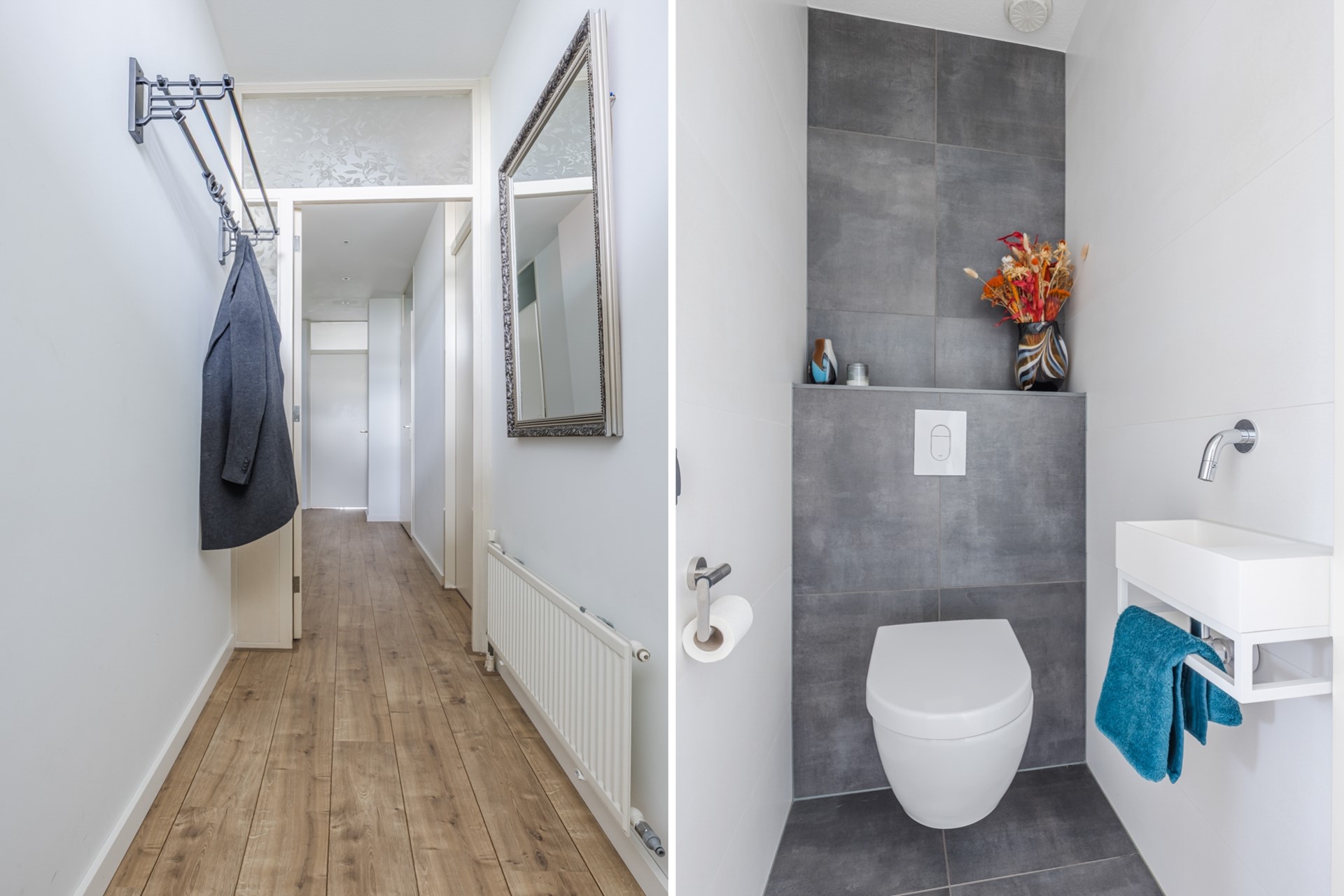 Verder heeft de woning nog een apart toilet in dezelfde stijl als de badkamer, meterkast met stopcontact in de meterkast en een inpandige voorraadkast, waar zich ook de CV-ketel bevindt.