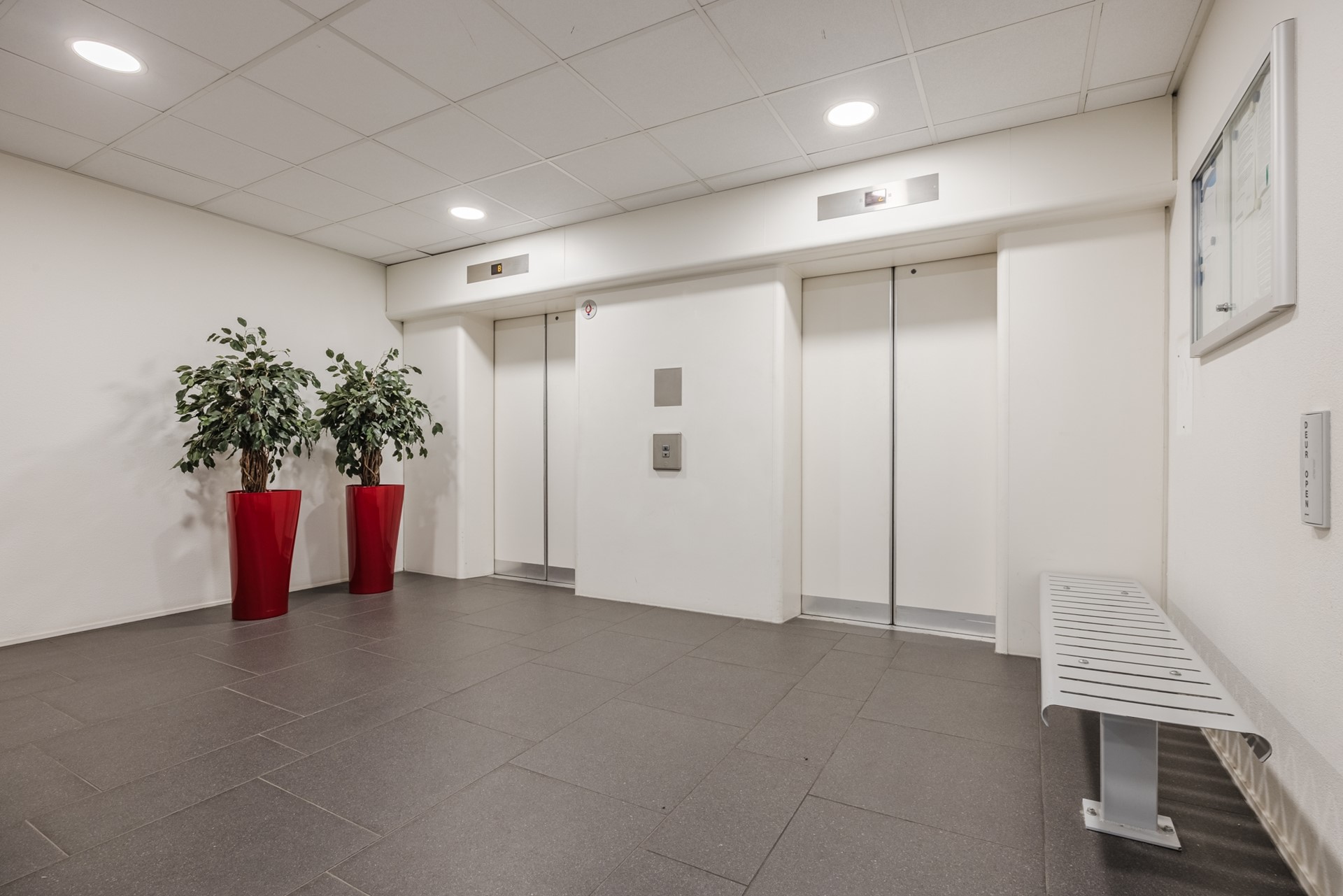 In de portiek van het appartementencomplex vindt u de brievenbussen en een intercomsysteem met camera. U krijgt een tag waarmee de gemeenschappelijke toegangsdeuren voor u open gaan. Via de liften of het trappenhuis krijgt u vervolgens toegang tot de vijfde verdieping.
