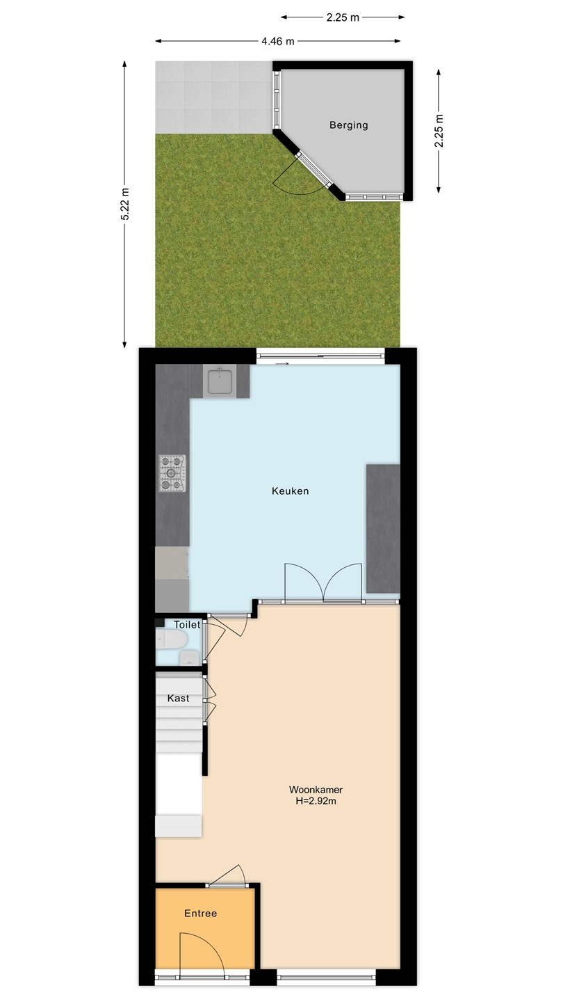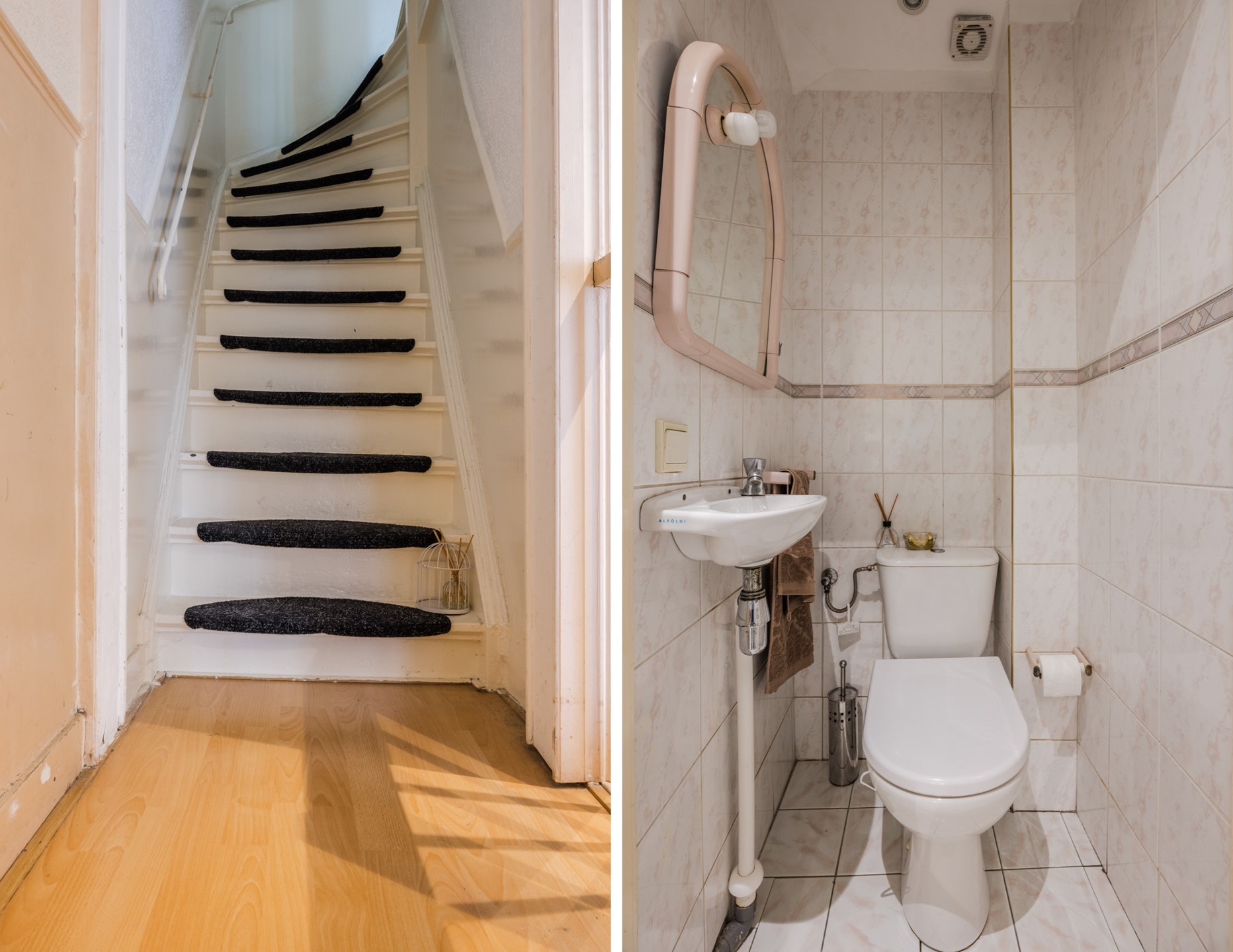 Verder heeft u nog een trapkast, toilet en de trapopgang naar de eerste verdieping. Het toilet is geheel betegeld en voorzien een fonteintje.